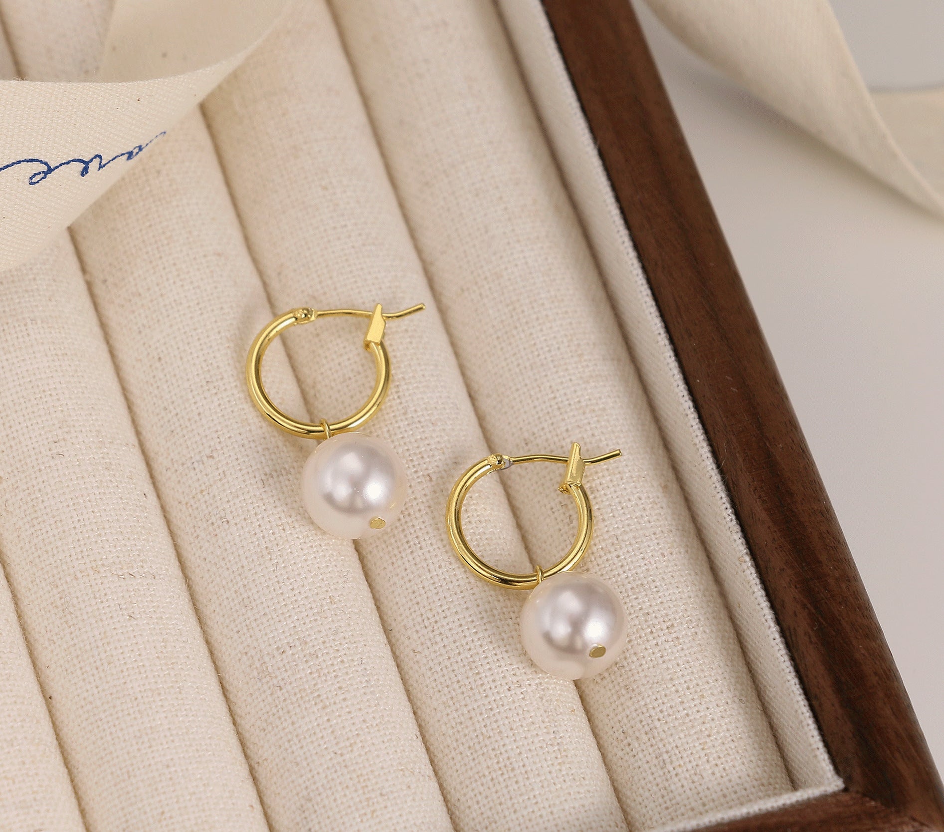 Size: Earrings with a Diameter of Approximately 14mm and Pearl Size of Approximately 10mm